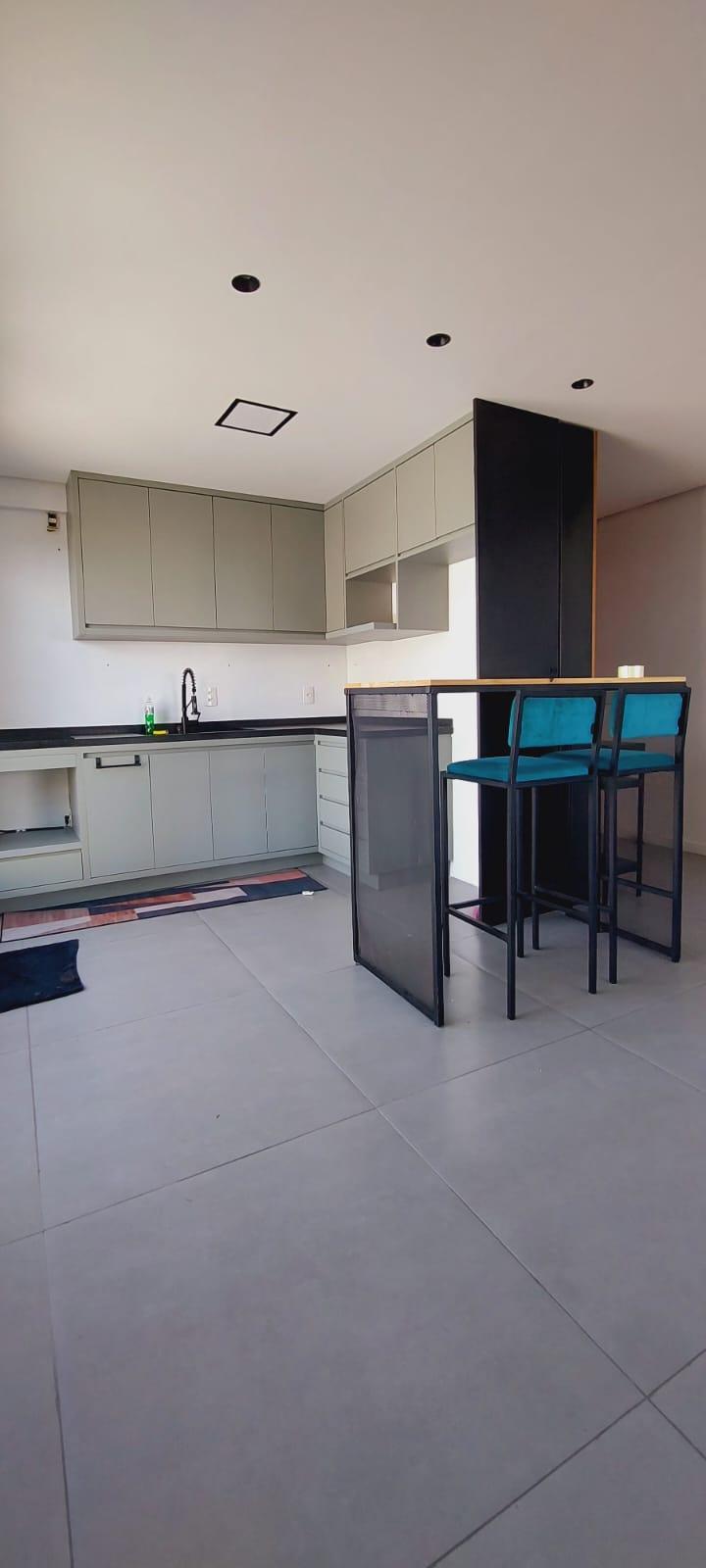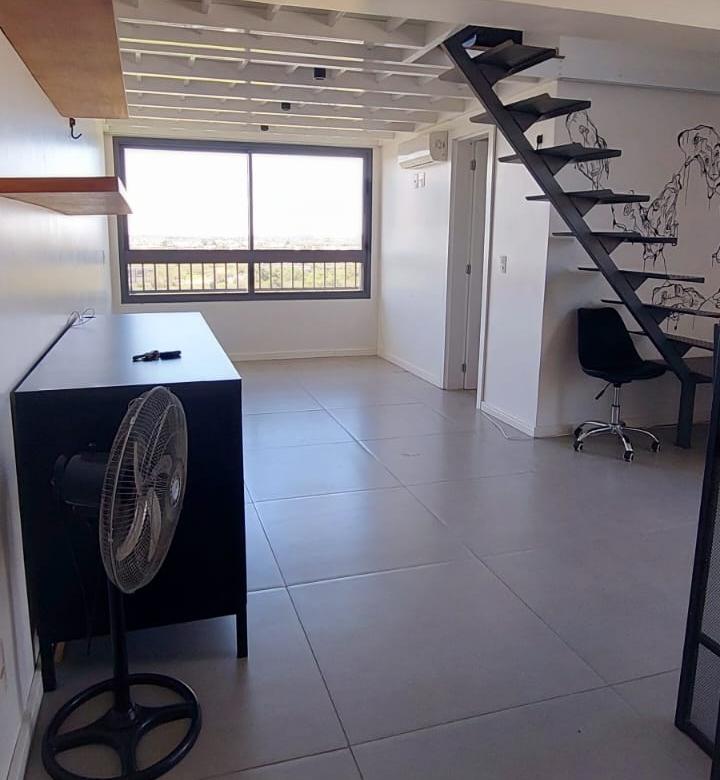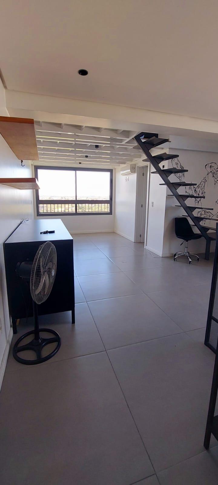 Excelente studio com 46m², pé-direito duplo e mezanino, totalmente mobiliado com muito bom gosto.